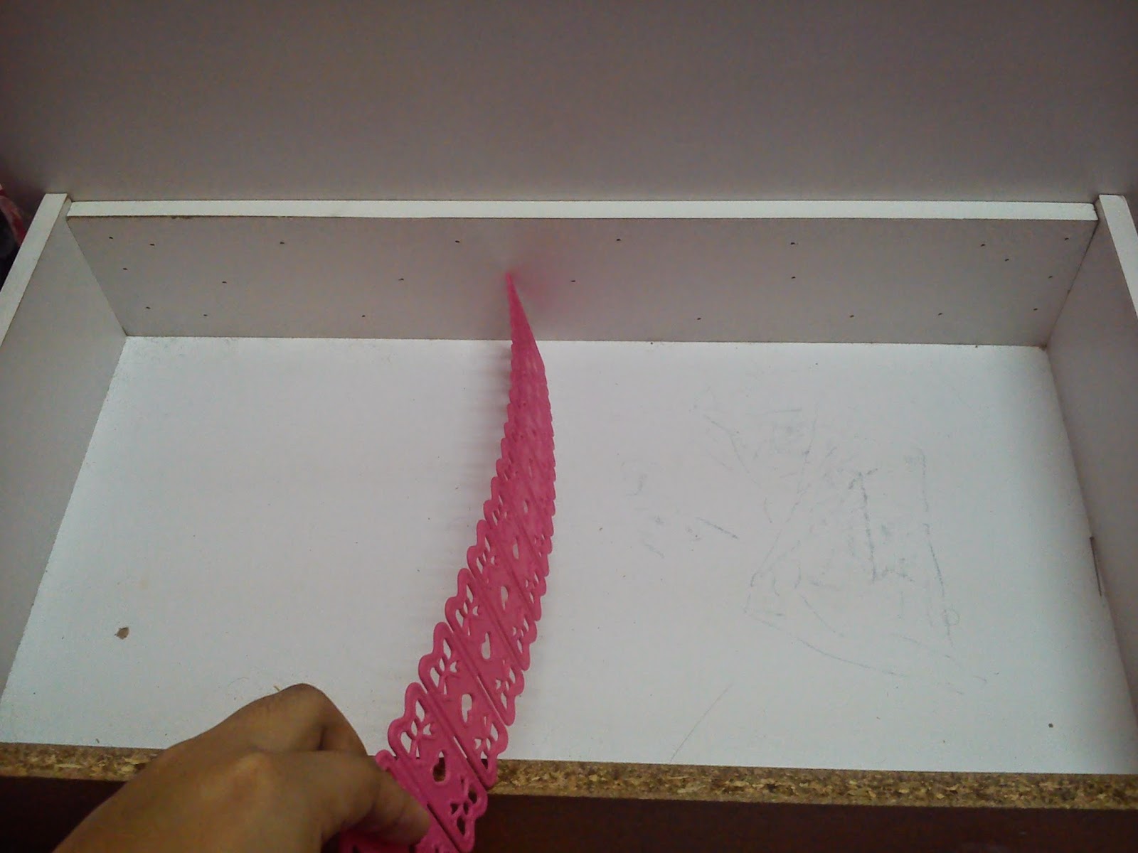 Keluarkan barang-barang dalam laci tu semua then ukur kepanjangan partition tadi tu. Kalau panjang, potonglah. Kalau pendek, korang sambungkan je. Senang dan mudah dan jimat masa.