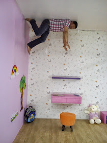 Dah sampai turn nak masuk dalam rumah terbalik tu, ada pekerja dia bagi briefing macam mana cara nak tangkap gambar. Cara, gaya semua dia bagi tahu lah. Kalau tak tahu jugak, memang ada pekerja rumah terbalik ni akan entertain kita and tolong tangkapkan gambar. Siap bagi idea lagi gaya apa nak buat. Ok bagus-bagus, mesra pelanggan. First impression is important ok I tell you. Aku nak ingatkan awal-awal, make sure korang bawak kamera and handphone mestilah ada battery yang full ok. Powerbank kan masing-masing hado ! Apa nak risau kan. huhuhu